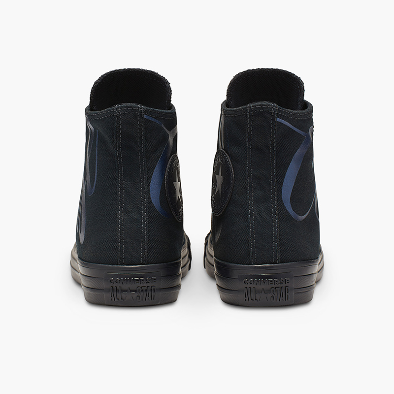 Cách mà Converse chiều lòng các “người đẹp” của mình lại được thể hiện qua khả năng thiết kế những phiên bản phối màu, phối chữ vô cùng độc đáo. Sự xuất hiện của mẫu giày cổ cao cá tính này được đi kèm với hai phiên bản màu sắc cơ bản nhất là đen và trắng.Dành sự độc đáo này cho những cá tính mạnh, Star Iridescent Star – 566175C màu đen là sự lựa chọn mà nhiều cô nàng hướng đến.Trên một lớp Upper được làm từ vải canvas truyền thống mềm mịn và thoáng khí là dòng chữ CONVERSE được chạy xuyên “không gian” từ hông thân giày bên trái sang bên phải. Sự biến tấu độc đáo này được nổi bật hơn trên tone màu xanh đậm. Tên thương hiệu được chia nửa thành CON VÀ VERSE như ngầm khẳng định rằng: sự hoàn hảo này không nằm riêng rẽ ở từng chiếc, nó chỉ trọn vẹn và đúng ý đồ khi được đặt song song cả một đôi. Ở phiên bản này, người thiết kế đã chú trọng nhiều hơn đến khả năng tạo nên sự mềm mại trong họa tiết của đôi giày.