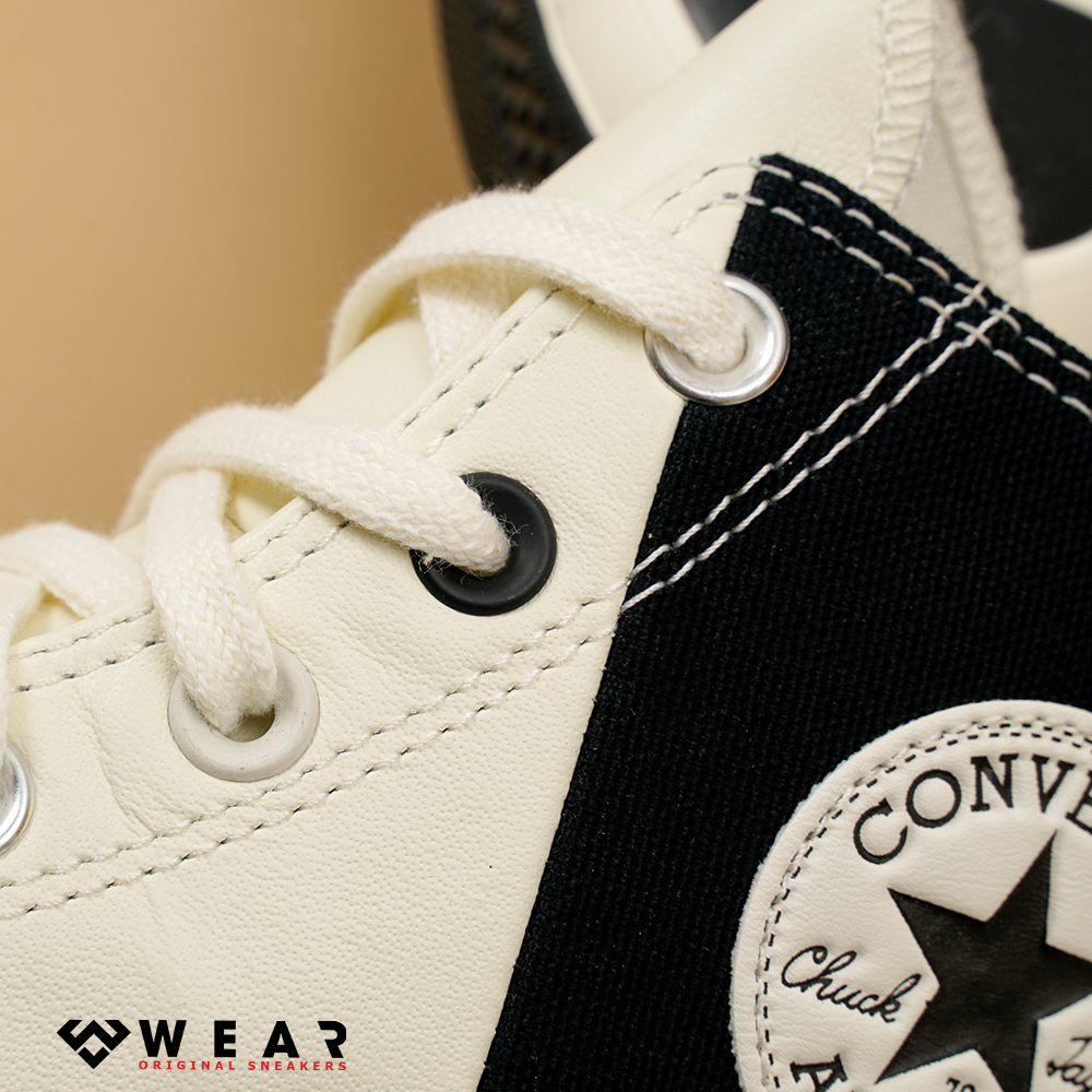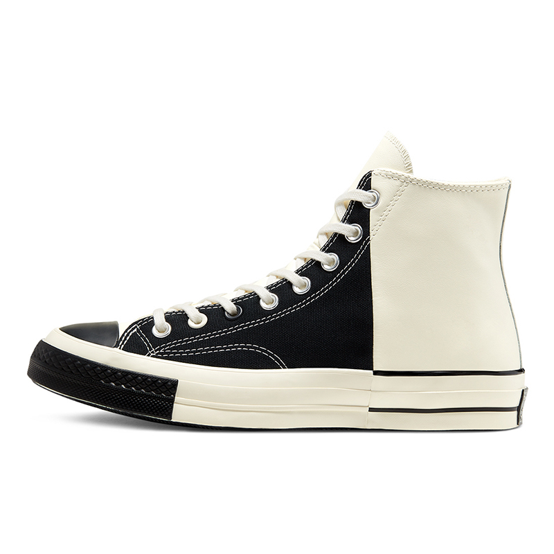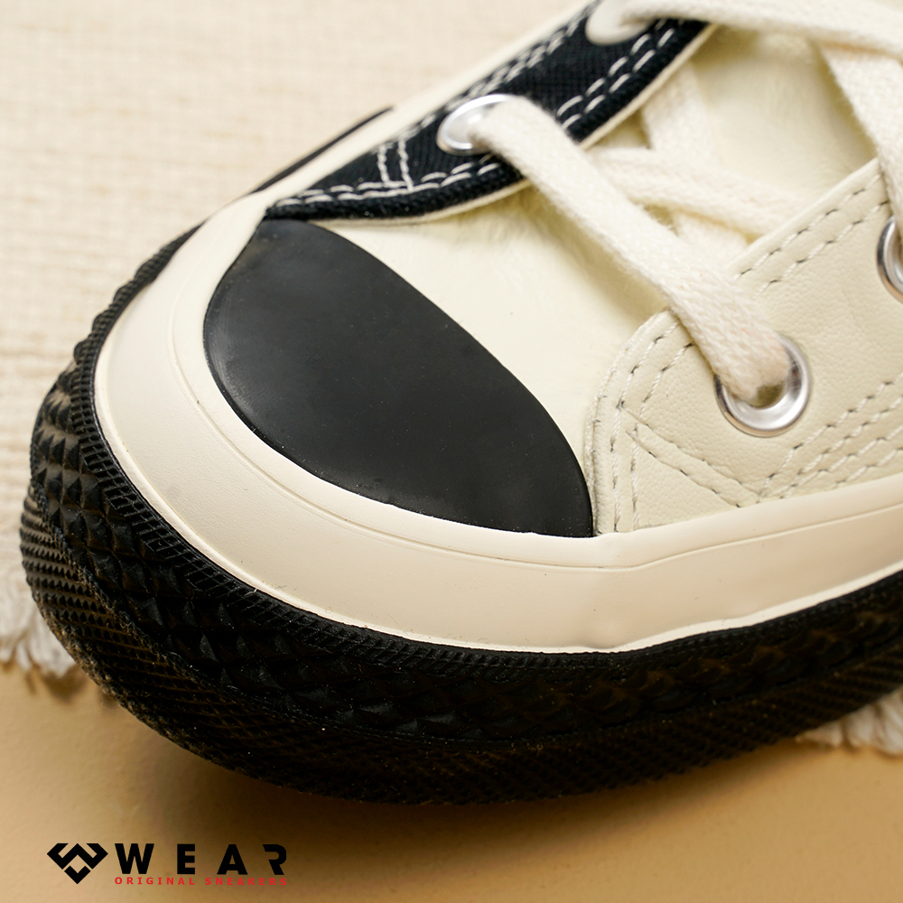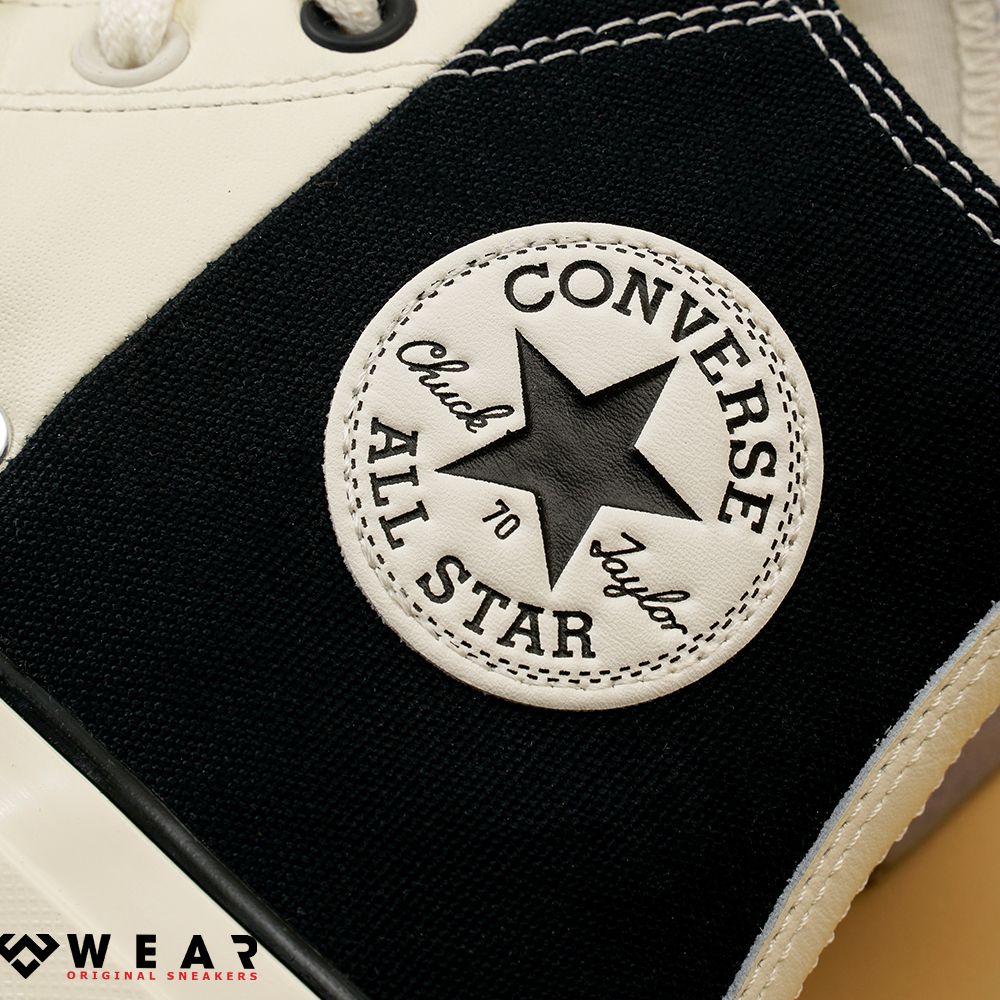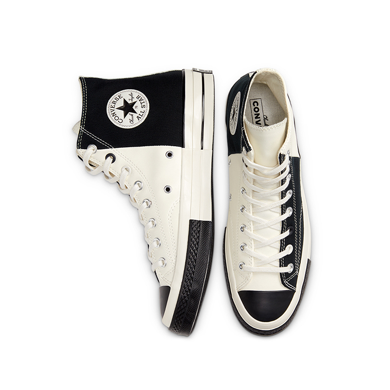 Có thể dễ dàng quan sát được một cách nhanh chóng, phần thân giày Chuck 70 Rivals được chia thành 4 mảng mày khác nhau bởi hai trục ngang và dọc, kèm theo đó là phong cách phối đối lập từ màu sắc: màu đen – trắng ngà egret cực sang trọng, xen kẽ cho tới đối xứng về chất liệu vải với da vừa mới lạ vừa thu hút.